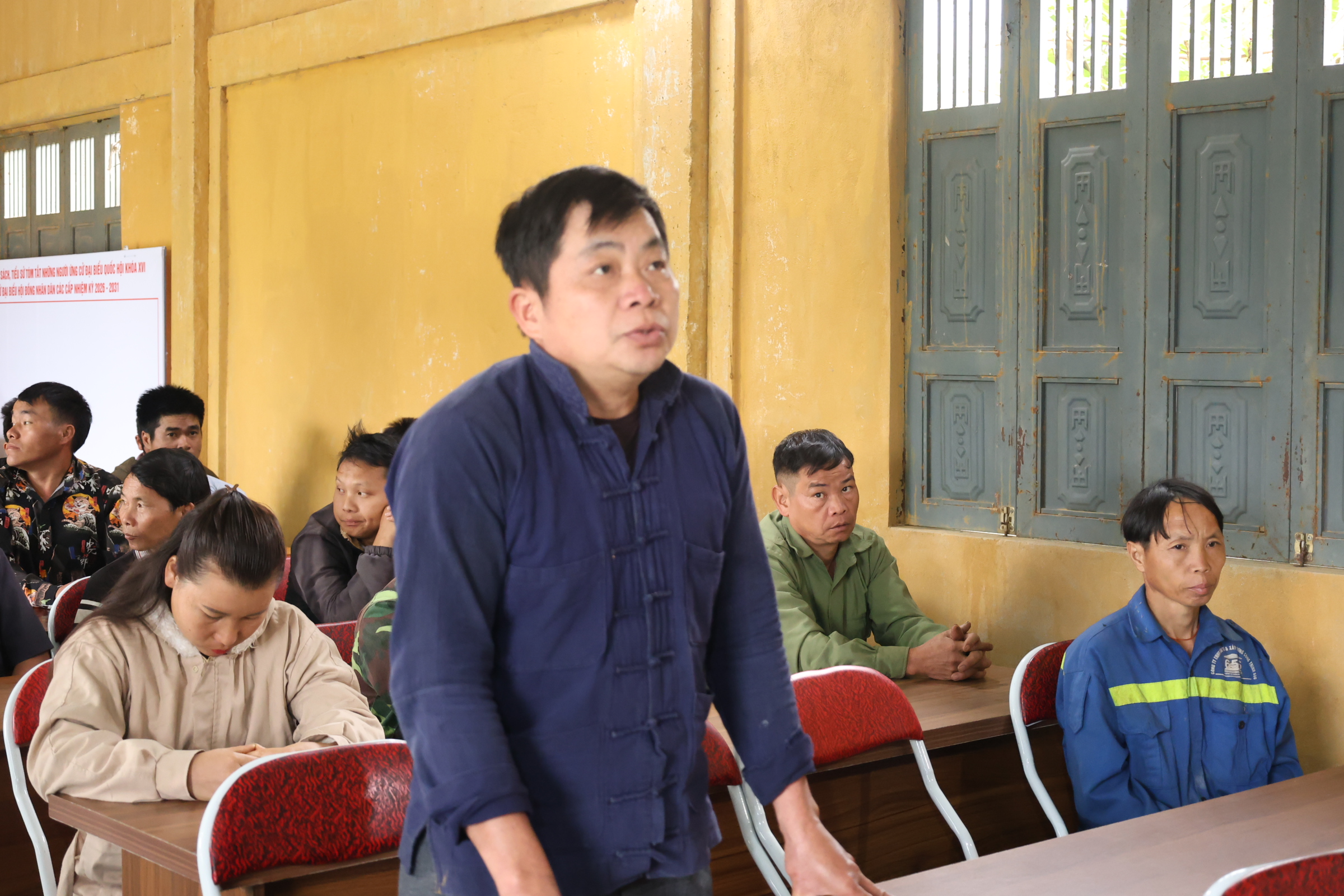 Đồng chí Tô Viết Hiệp, Bí thư Đảng uỷ xã Lâm Bình trao đổi với cử tri