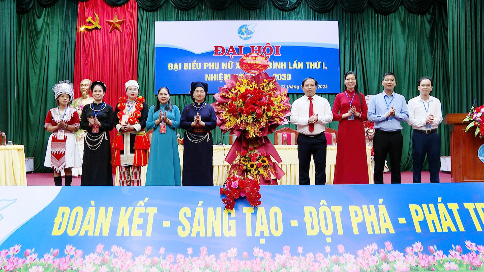 Các đại biểu chụp ảnh lưu niên với Ban Chấp hành Hội LHPN xã Lâm Bình lần thứ I, nhiệm kỳ 2025 - 2030