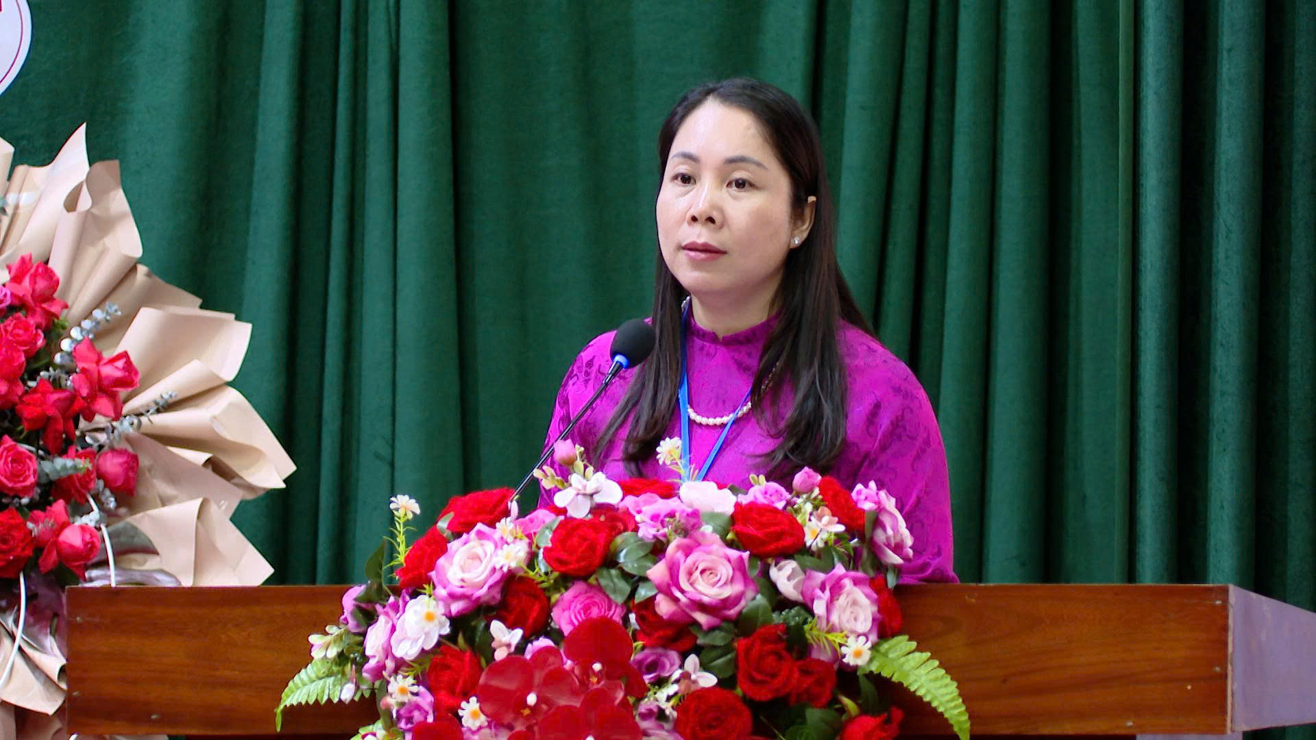 Đồng chí Phạm Thị Minh Tâm, Phó Chủ tịch Hội LHPN tỉnh phát biểu tại đại hội