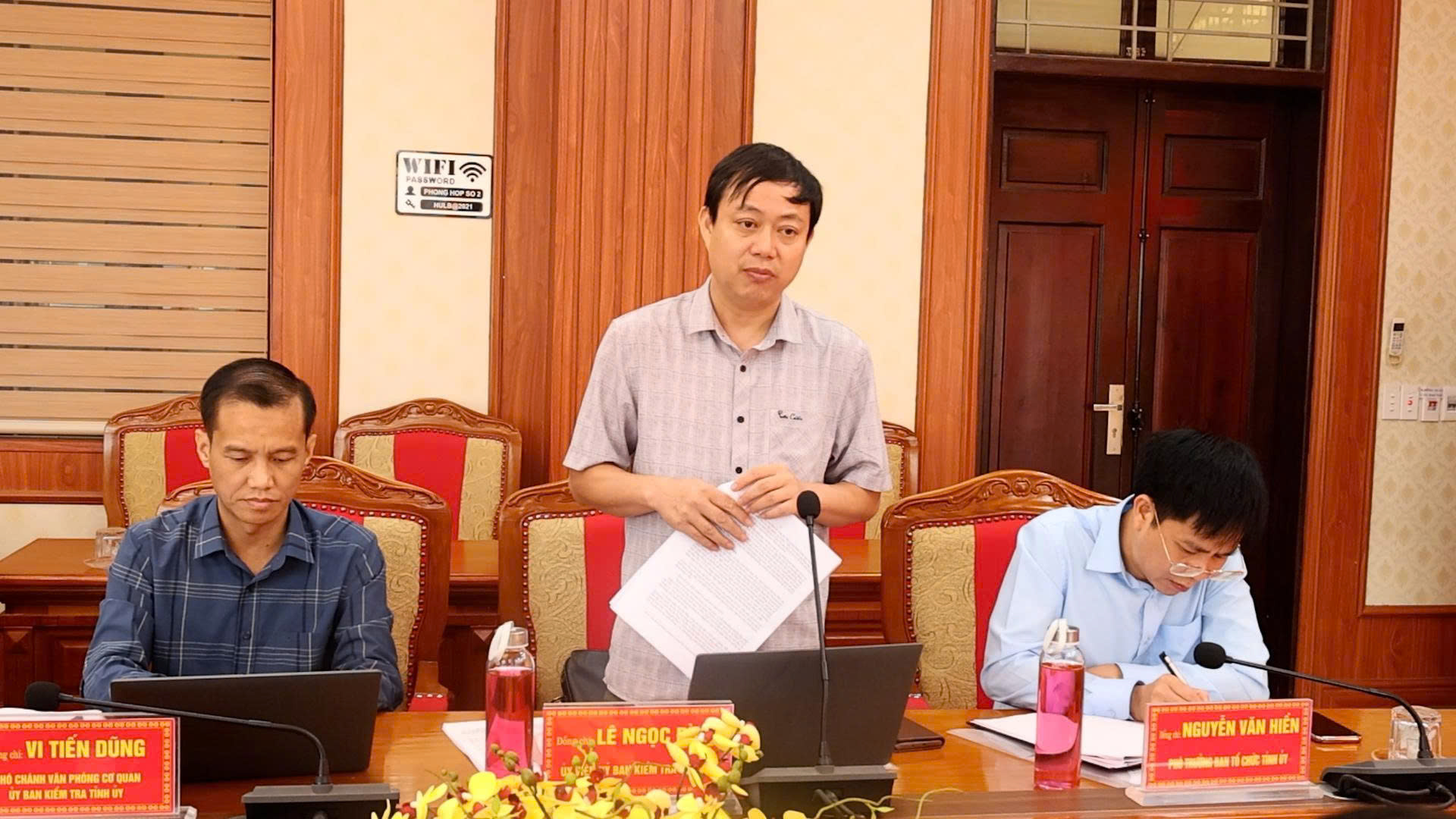 Đồng chí Nguyễn Văn Hiền, Phó Trưởng Ban Tổ chức Tỉnh uỷ phát biểu tại hội nghị