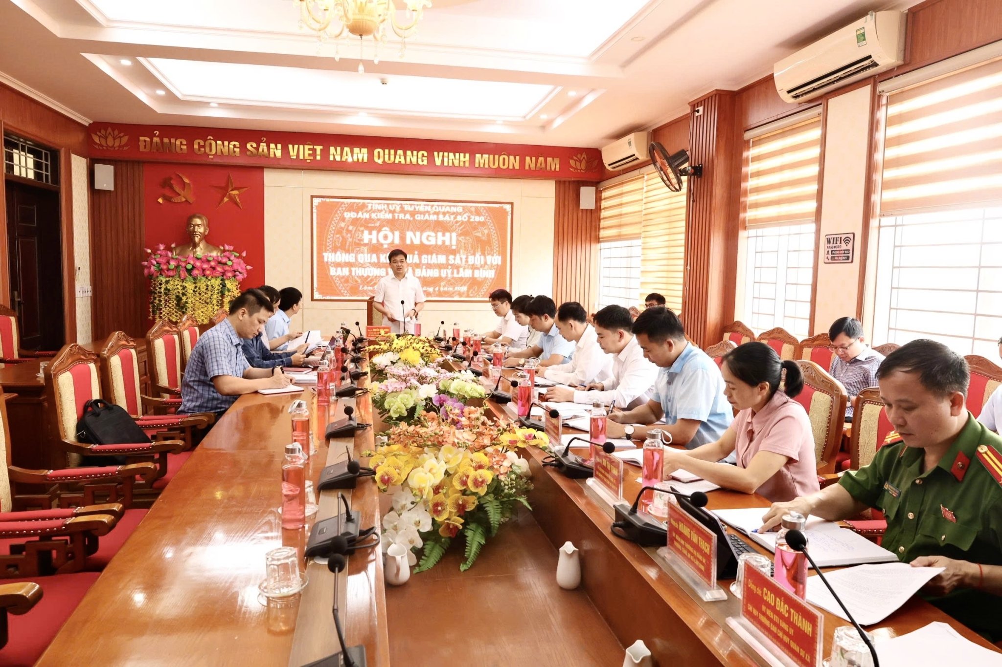 Tại buổi làm việc Đoàn kiểm tra, giám sát đã thông qua dự thảo báo cáo kết quả giám sát của Đoàn kiểm tra, giám sát số 280 của Ban Thường vụ Tỉnh ủy đối với Đảng uỷ xã Lâm Bình. Theo báo cáo Ban Thường vụ Đảng ủy xã đã tập trung lãnh đạo, chỉ đạo, quán triệt, cụ thể hóa và tổ chức triển khai thực hiện nghiêm túc, kịp thời các Nghị quyết và Chương trình hành động thực hiện Nghị quyết của Trung ương, của tỉnh và của Đảng bộ xã. Công tác tổ chức nghiên cứu, học tập, quán triệt và tuyên truyền Nghị quyết được triển khai nghiêm túc, đúng đối tượng và yêu cầu đề ra; lãnh đạo, chỉ đạo triển khai thực hiện nghiêm túc Chỉ thị số 46-CT/TW, ngày 16/ 5/ 2025 của Bộ Chính trị và các văn bản chỉ đạo, hướng dẫn của Trung ương, của tỉnh về công tác bầu cử đại biểu Quốc hội khóa XVI và đại biểu Hội đồng nhân dân các cấp nhiệm kỳ 2026 – 2031. Tỷ lệ cử tri đi bỏ phiếu đạt 100%, đã bầu đúng bầu đủ số lượng.