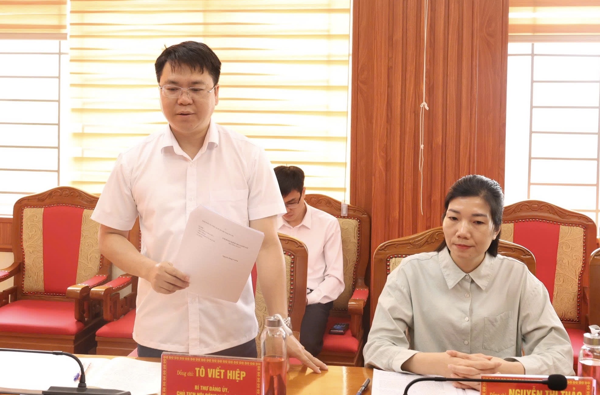 Làm việc với đoàn về phía Đảng uỷ xã Lâm Bình có các đồng chí Tô Viết Hiệp, Bí thư Đảng uỷ, Chủ tịch Hội đồng nhân dân xã; Nguyễn Thị Thảo, Phó Bí thư Thường trực Đảng ủy, Giám đốc Trung tâm Chính trị Lâm Bình; Trương Văn Quang, Phó Bí thư Đảng uỷ, Chủ tịch Uỷ ban nhân dân xã; các đồng chí Uỷ viên Ban Thường vụ Đảng uỷ, Lãnh đạo Uỷ ban nhân dân xã, lãnh đạo các cơ quan, đơn vị liên quan.