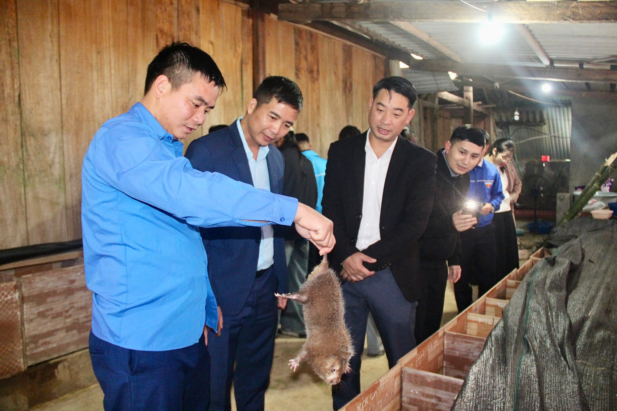 Trước khi diễn ra hội nghị đối thoại, các đại biểu và các bạn đoàn viên, thanh niên đã tham quan Mô hình nuôi dúi của đoàn viên Triệu Văn Hàng, thôn Nặm Chá và tham quan gian hàng thổ cẩm truyền thống Lâm Bình.