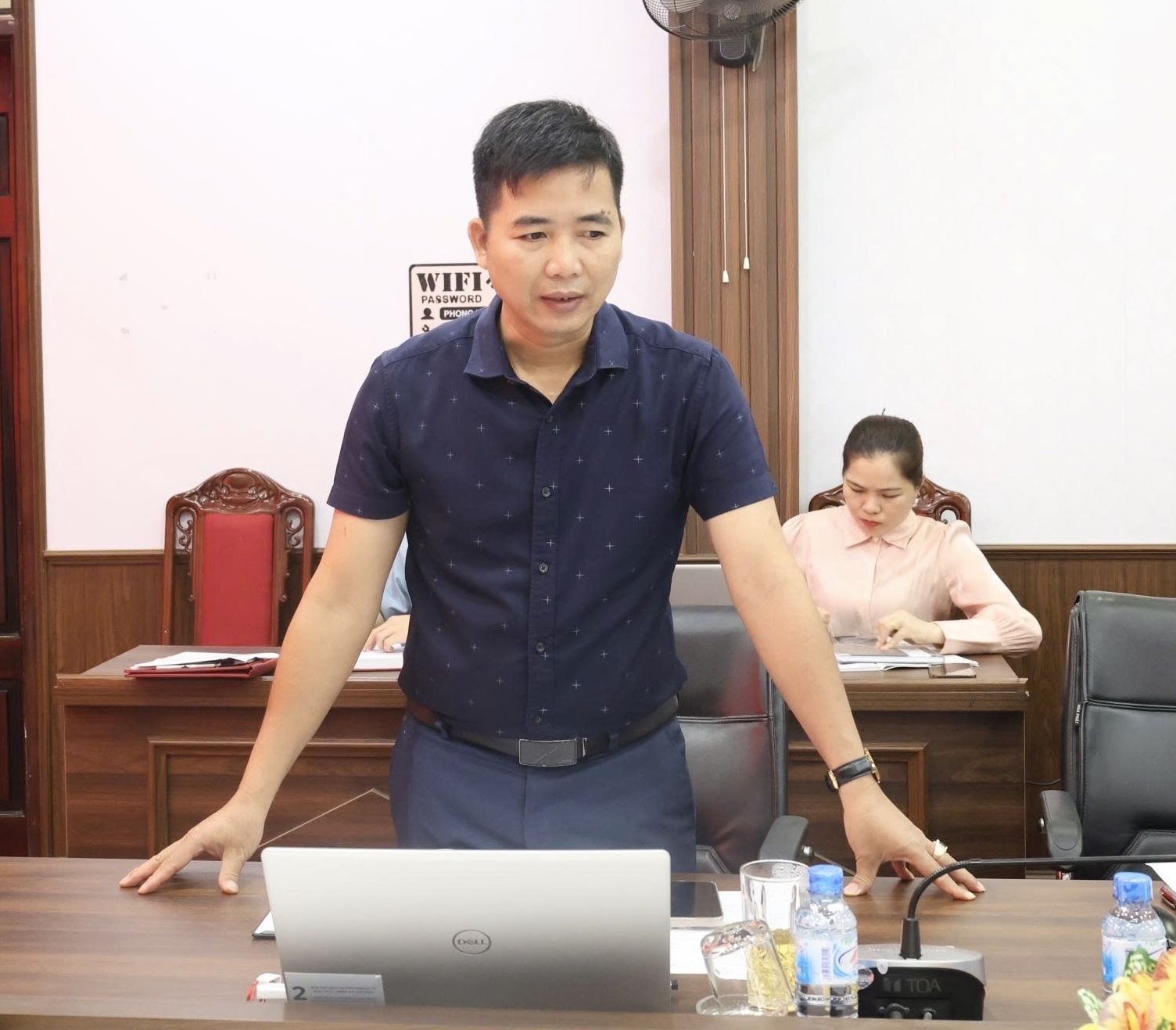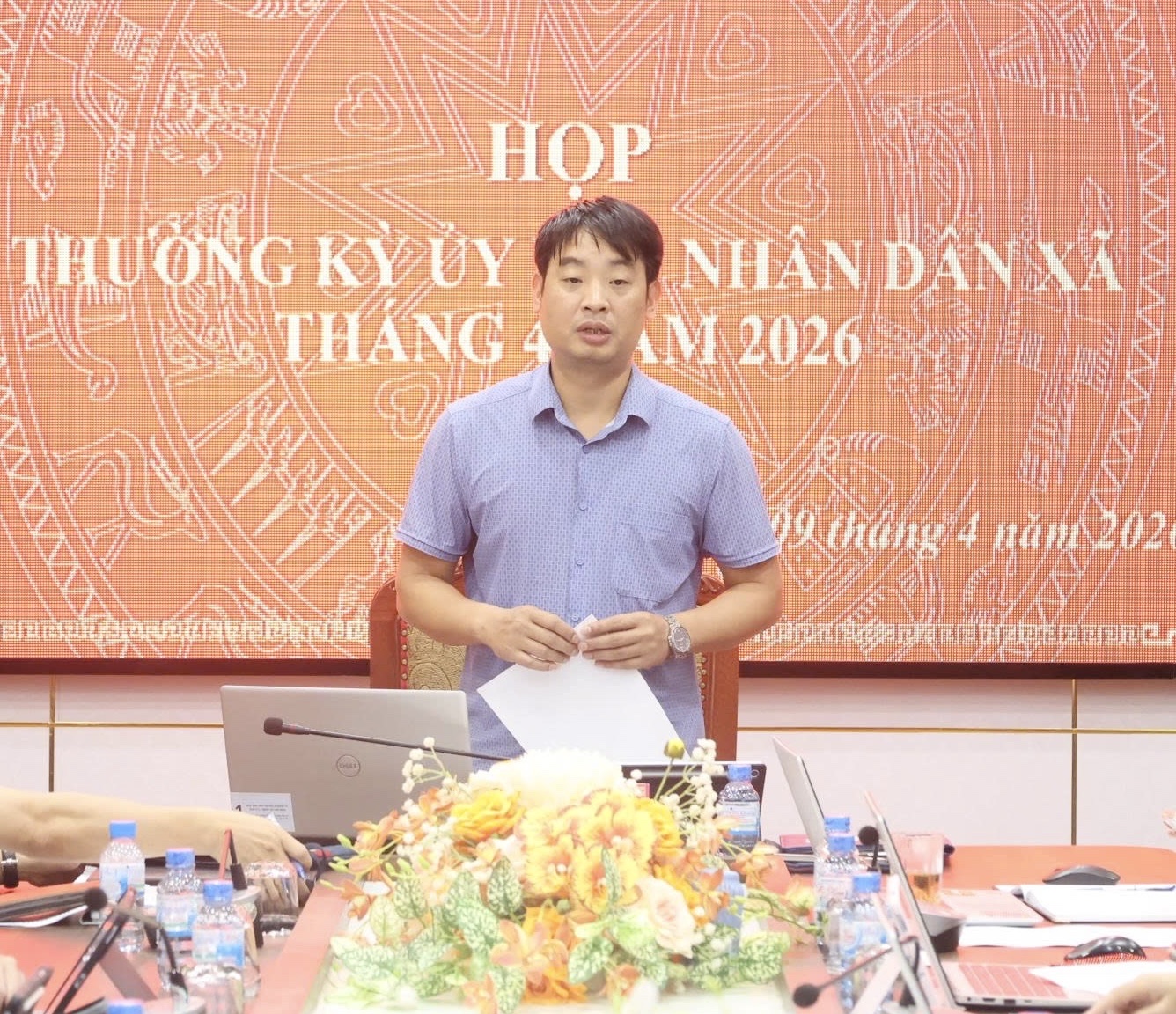 Đồng chí Trương Văn Quang, Phó Bí thư Đảng ủy, Chủ tịch Ủy ban nhân dân xã Lâm Bình phát biểu tại phiên họp