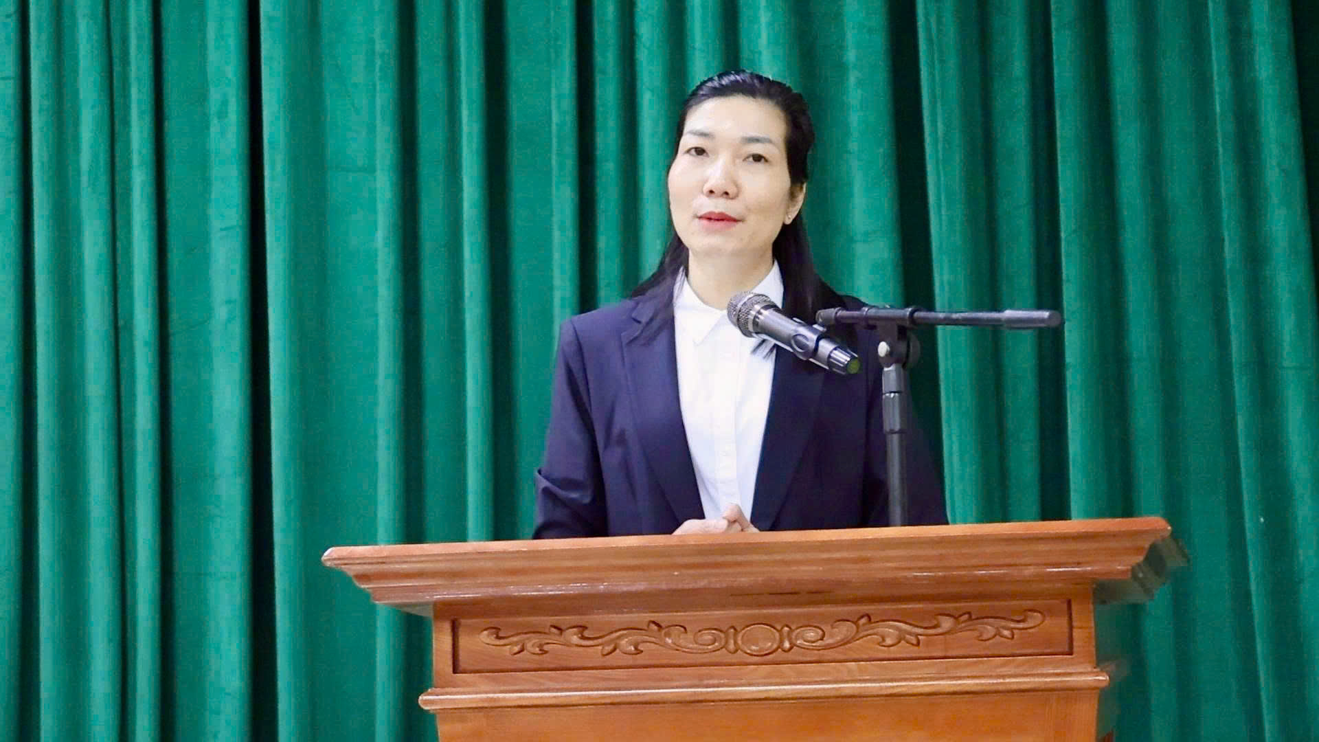 Đ/c Nguyễn Thị Thảo, Phó Bí thư Thường trực Đảng uỷ, Chủ tịch HĐND xã, Giám đốc Trung tâm Chính trị Lâm Bình phát biểu khai mạc