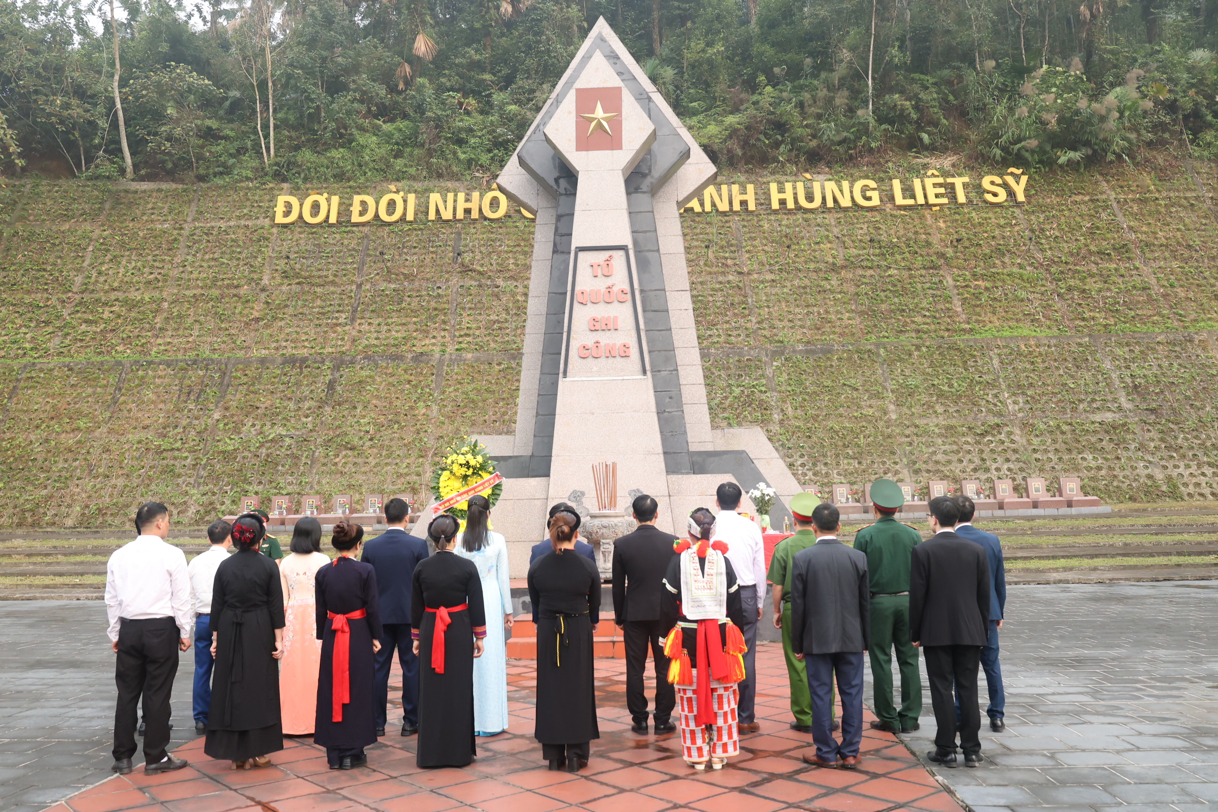 Các đại biểu đến dâng hương, dâng hoa tưởng niệm các anh hùng liệt sỹ tại nghĩa trang liệt sỹ Lâm Bình