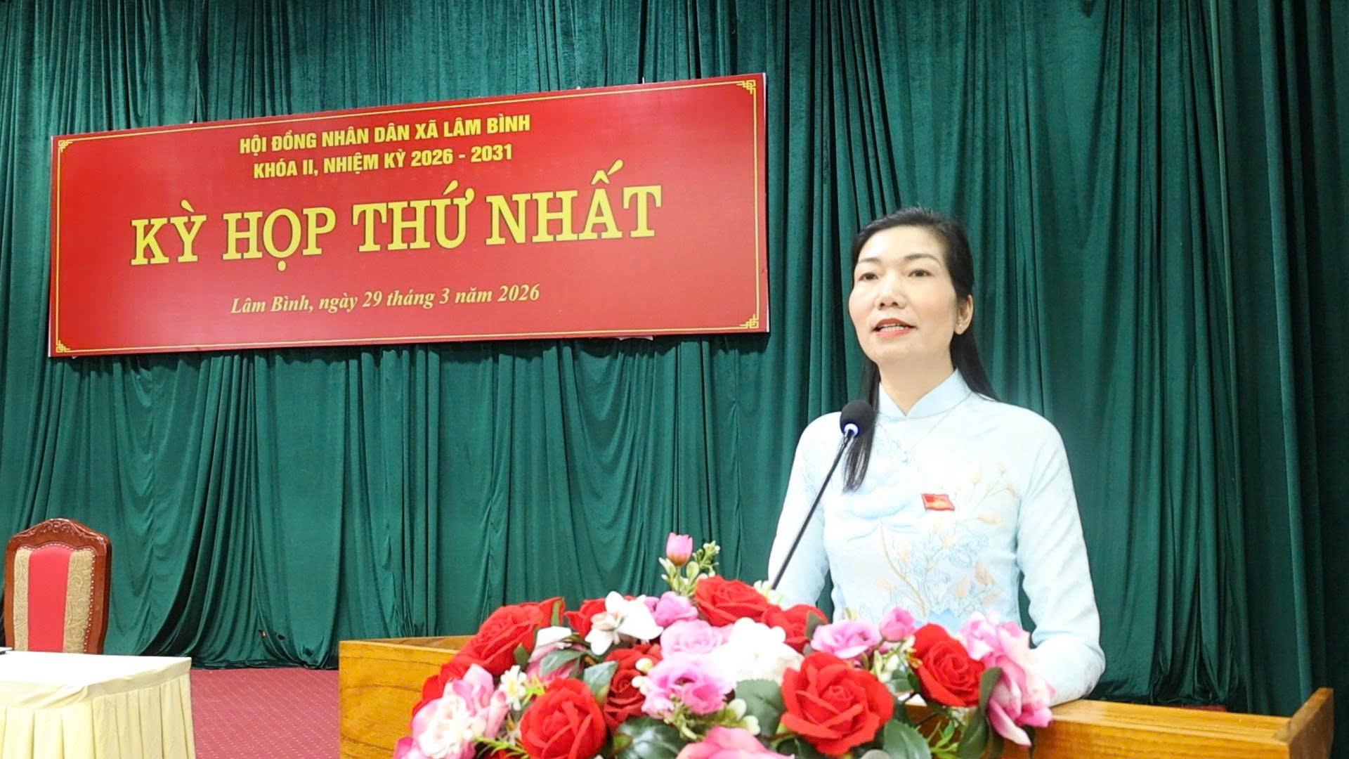 Phát biểu bế mạc kỳ họp, đồng chí Tô Viết Hiệp, Bí thư Đảng uỷ, Chủ tịch HĐND xã Lâm Bình khoá II, nhiệm kỳ 2026 - 2031 nhấn mạnh: kết quả của kỳ họp đã thể hiện tinh thần trách nhiệm cao, sự tín nhiệm của các đại biểu HĐND xã đối với những người được bầu giữ các chức vụ lãnh đạo của HĐND và UBND xã trong nhiệm kỳ mới . Đây là tiền đề rất quan trọng để hoạt động của HĐND xã nhiệm kỳ 2026 - 2031 tiếp tục được đổi mới, nâng cao hiệu lực, hiệu quả…
