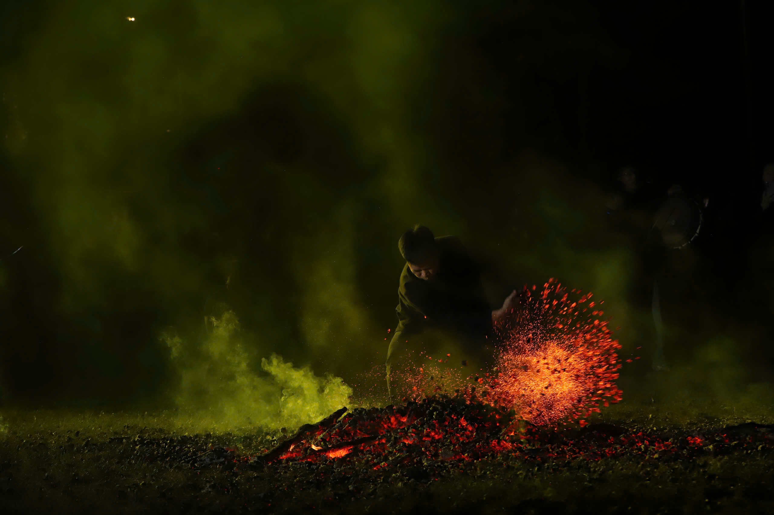 Sau chương trình nghệ thuật là nghi thức nhảy lửa truyền thống của đồng bào dân tộc Dao. Nhảy lửa là một phong tục độc đáo, thiêng liêng của người Dao, thường được tổ chức vào dịp đầu năm mới. Đây không chỉ là màn trình diễn mà còn là nghi lễ tâm linh thể hiện niềm tin vào thần linh, cầu mong sức khỏe, may mắn, bình an, xua đuổi tà ma và những điều không tốt của năm cũ.