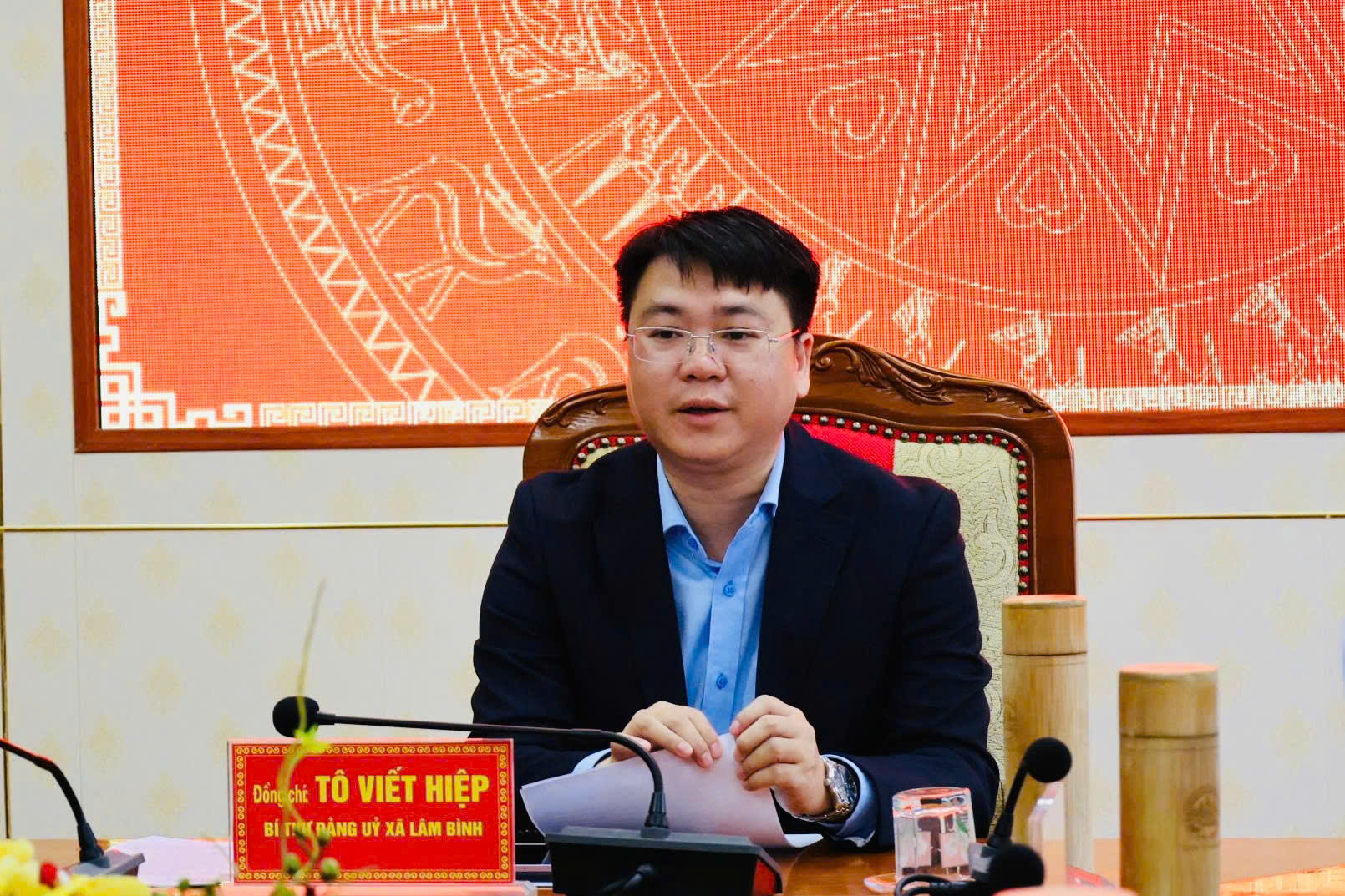Phát biểu kết luận tại hội nghị, đồng chí Tô Viết Hiệp, Bí thư Đảng uỷ, Trưởng Ban chỉ đạo về phát triển khoa học công nghệ, đổi mới sáng tạo và chuyển đổi số xã Lâm Bình nhấn mạnh: Yêu cầu đội ngũ cán bộ, công chức, viên chức, chậm nhất đến tháng 6/ 2026 sử dụng thành thạo dịch vụ công quốc gia; giao cho khối giáo dục học sinh tờ lớp 9 đến bậc THPT đến hết năm 2026 sử dụng thành thạo dịch vụ công quốc gia. Các cơ quan đơn vị xây dựng kế hoạch phủ sóng mạng viễn thông, xây dựng xã hội học tập suốt đời và tăng cường chỉ đạo bình dân học vụ số../.