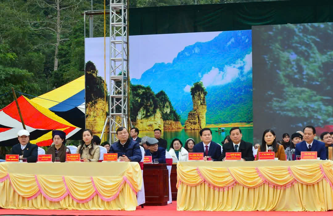 Các đồng chí đại biểu tham dự Lễ hội Lồng tông, Ngày hội Văn hoá các dân tộc huyện Lâm Bình năm 2025