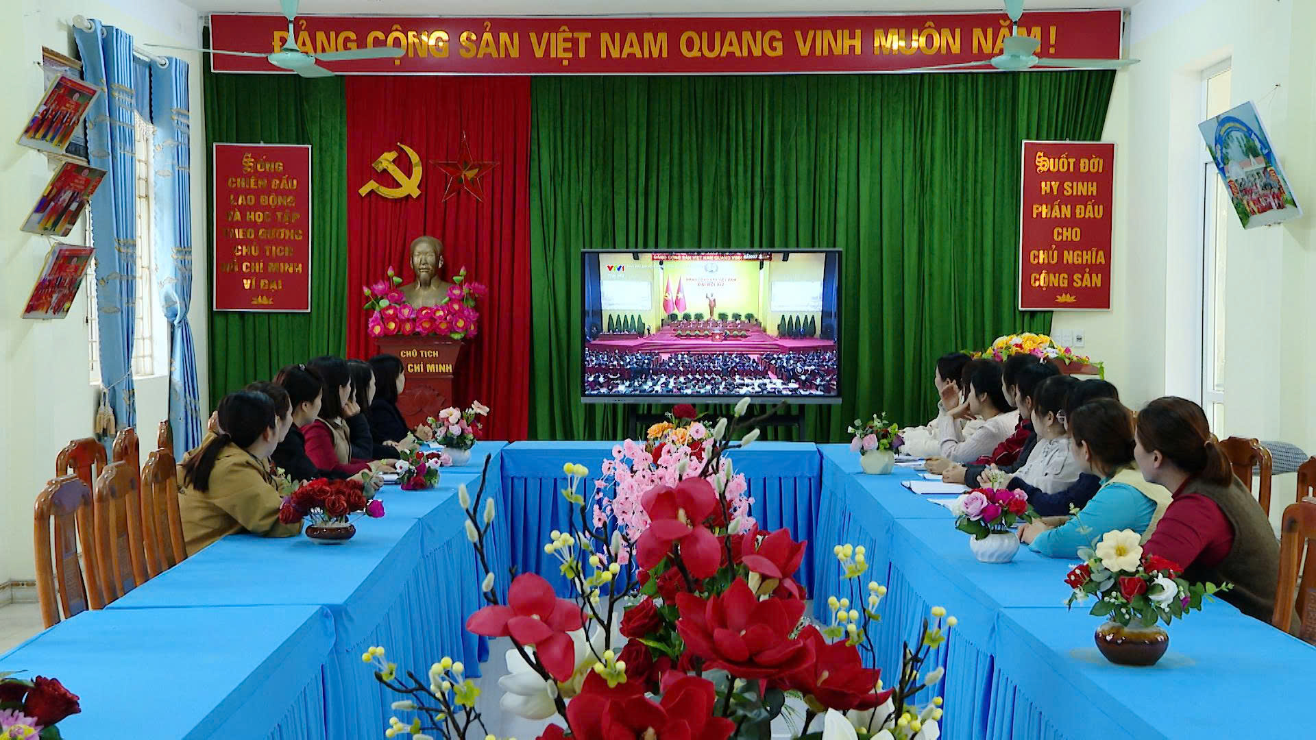 Cán bộ Đảng viên Trường Mầm Non Lăng Can theo dõi Đại hội