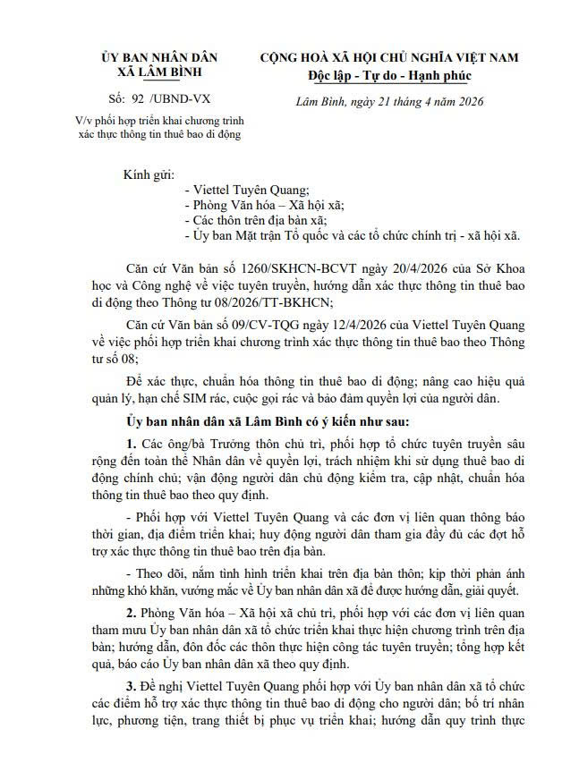 Phối hợp triển khai chương trình xác thực thông tin thuê bao di động