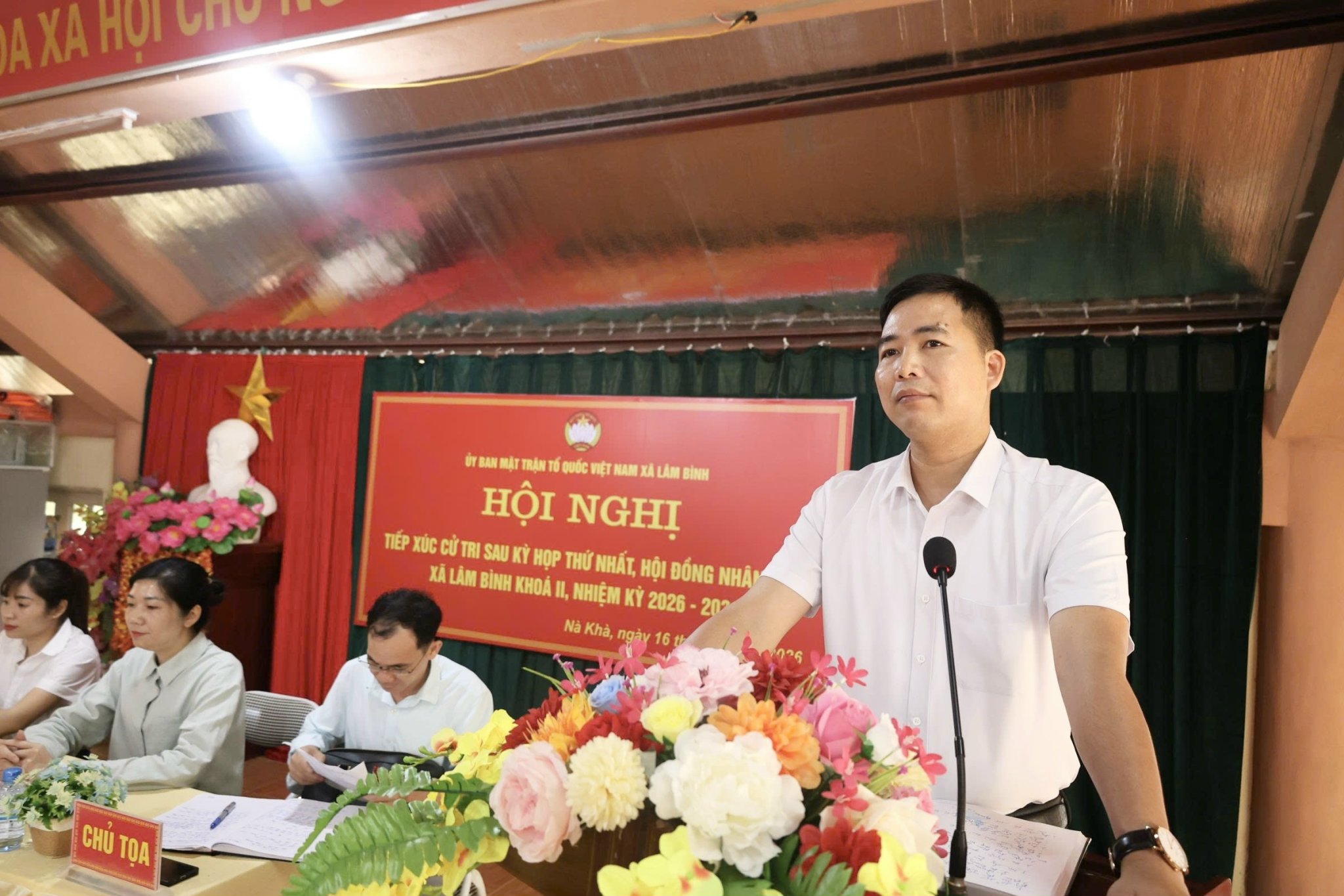 Tại hội nghị, các đại biểu HĐND xã Lâm Bình khoá II, nhiệm kỳ 2026 – 2031 đã thông báo tới cử tri kết quả cuộc bầu cử đại biểu Quốc hội khoá XVI và đại biểu HĐND các cấp nhiệm kỳ 2026 – 2031; nội dung, kết quả Kỳ họp thứ nhất HĐND xã Lâm Bình khoá II, nhiệm kỳ 2026 – 2031; tuyên truyền, thông tin đến cử tri các nghị quyết đã được HĐND xã ban hành. Đồng thời, nắm bắt tâm tư, nguyện vọng, kiến nghị của cử tri liên quan đến tình hình phát triển kinh tế - xã hội, bảo đảm quốc phòng, an ninh.