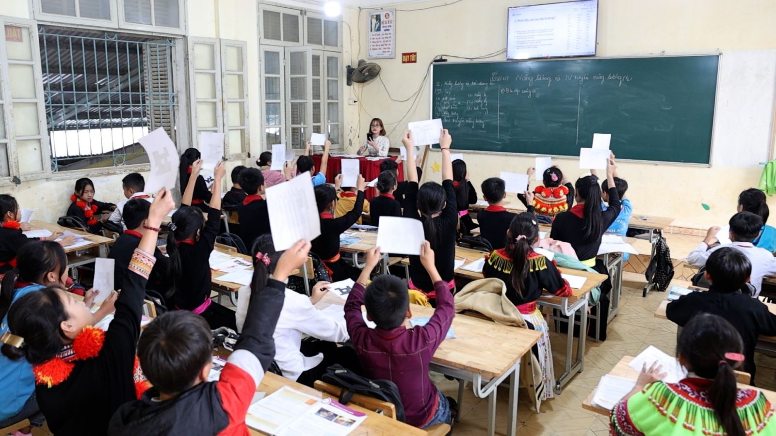 Giờ học hiệu quả và thú vị khi các thầy, cô giáo Trường PT DT Bán trú THCS Bình An áp dụng phần mềm Plickers trong quá trình tổ chức ôn tập và kiểm tra trắc nghiệm học sinh