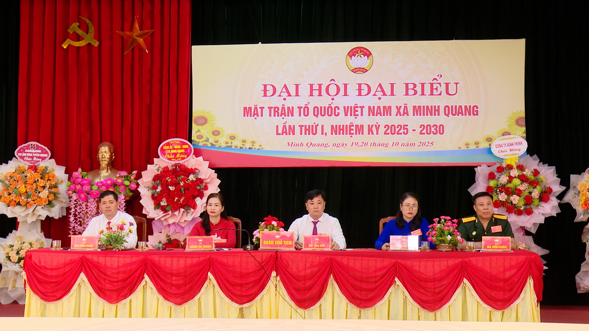 Đại hội đã hiệp thương cử Ủy ban MTTQ Việt Nam xã Minh Quang khóa I, nhiệm kỳ 2025 - 2030 gồm 61 vị; Tại Kỳ họp thứ Nhất Ủy ban MTTQ Việt Nam xã Minh Quang khóa I, đã hiệp thương cử các chức danh Chủ tịch, Phó Chủ tịch Uỷ ban MTTQ Việt Nam xã khoá I, nhiệm kỳ 2025 - 2030, gồm 05 vị. Đồng chí Ma Văn Sức được tín nhiệm bầu giữ chức Chủ tịch Ủy ban MTTQ Việt Nam xã Minh Quang nhiệm kỳ mới. Đại hội cũng tiến hành hiệp thương cử đoàn đại biểu đi dự Đại hội đại biểu MTTQ Việt Nam tỉnh Tuyên Quang, nhiệm kỳ 2025 - 2030 gồm có 1 đại biểu chính thức và 1 đại biểu dự khuyết.