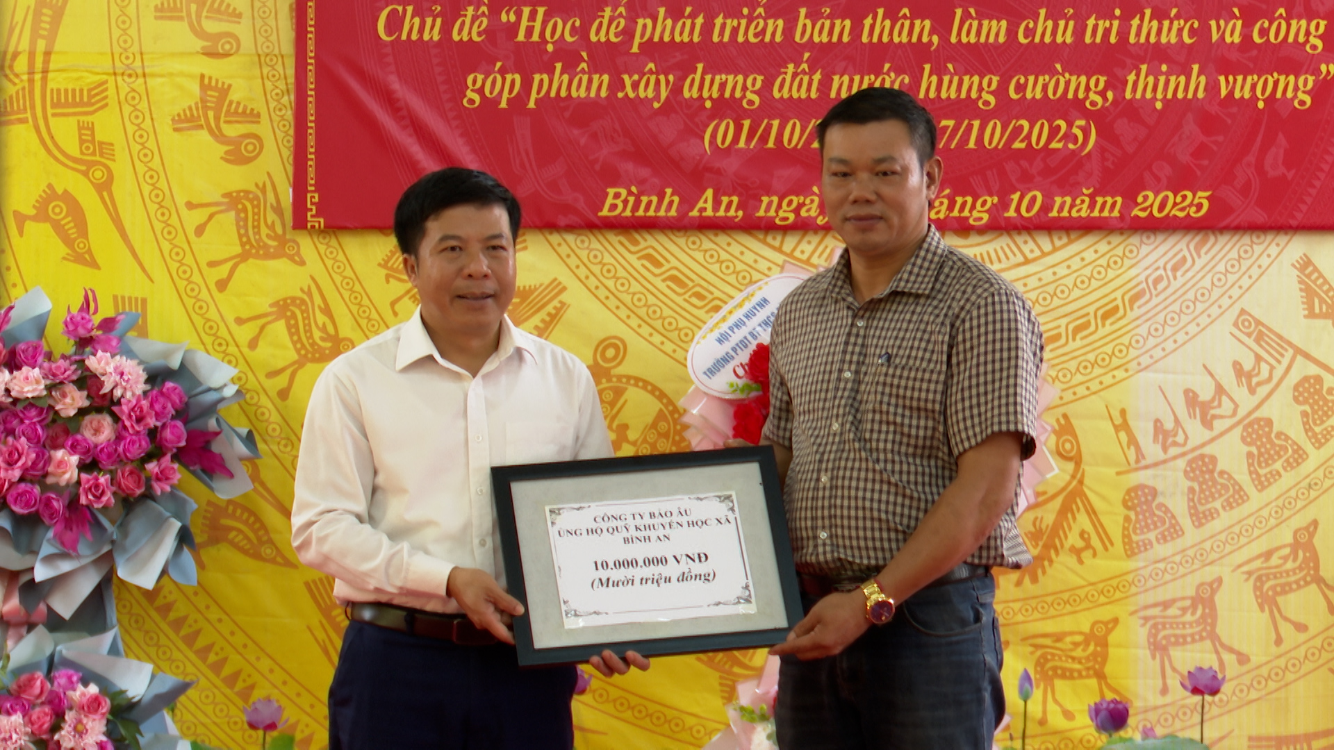 Tuần lễ hưởng ứng học tập suốt đời năm 2025 xã Bình An diễn ra từ ngày 1 đến ngày 7/10/2025. Với chủ đề “Học để phát triển bản thân, làm chủ tri thức và công nghệ, góp phần xây dựng đất nước hùng cường, thịnh vượng”. Trong Tuần lễ, các cơ quan, các đơn vị trường học sẽ lựa chọn tổ chức các hoạt động hưởng ứng phù hợp, hiệu quả, tập trung vào các nội dung như: Đẩy mạnh công tác tuyên truyền về vai trò của tự học, học tập suốt đời gắn với việc chủ động làm chủ tri thức và công nghệ; tri thức số và phương pháp học tập hiệu quả, giúp mọi người nâng cao nhận thức, hình thành ý thức tự học thường xuyên. Qua đó, các cán bộ, giáo viên và học sinh đã lên phát biểu hưởng ứng tuần lễ hưởng ứng học tập suốt đời năm 2025 và phát động vận động các cán bộ, công chức, viên chức, người dân ủng hộ xây dựng Quỹ Khuyến học xã năm 2025.