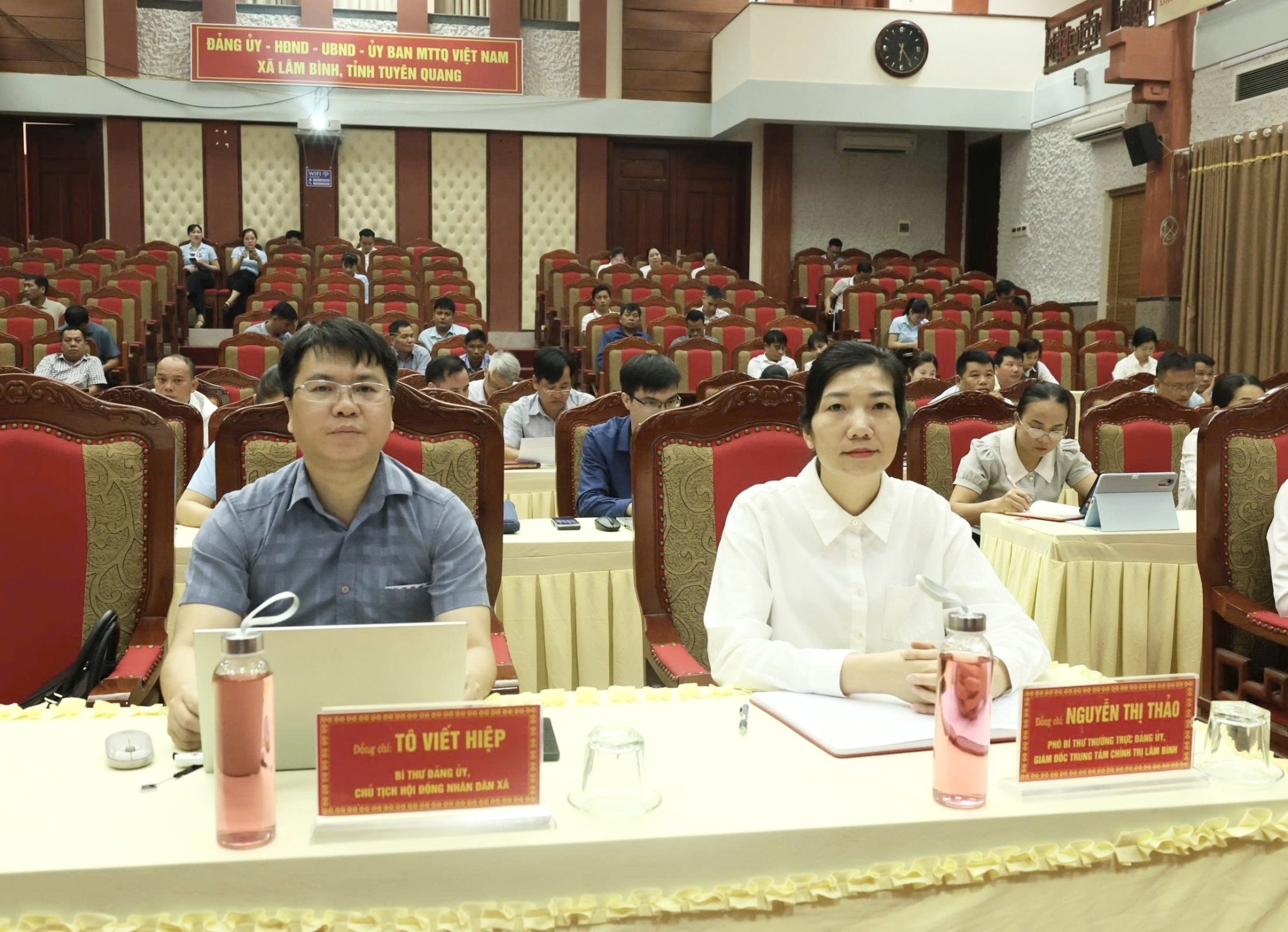 Dự tại điểm cầu xã Lâm Bình có các đồng chí Tô Viết Hiệp, Bí thư Đảng uỷ, Chủ tịch HĐND xã; Nguyễn Thị Thảo, Phó Bí thư Thường trực Đảng uỷ, Giám đốc Trung tâm Chính trị Lâm Bình; các đồng chí Ủy viên Ban Chấp hành Đảng bộ; lãnh đạo Hội đồng nhân dân, Uỷ ban nhân dân xã, Uỷ ban Mặt trận Tổ quốc và các tổ chức chính trị - xã hội xã; Trưởng, Phó các cơ quan chuyên trách tham mưu, giúp việc Đảng uỷ, các phòng, ban, đơn vị sự nghiệp thuộc Ủy ban nhân dân xã; Ủy viên Ủy ban Kiểm tra Đảng ủy; toàn thể cán bộ, công chức, viên chức, người lao động, đảng viên của Chi bộ cơ sở các cơ quan Đảng, Chi bộ cơ sở Uỷ ban nhân dân xã, Chi bộ cơ sở Quân sự xã, Chi bộ cơ sở Công an xã, chi bộ cơ sở Trung tâm GDNN – GDTX Lâm Bình; Bí thư, Phó Bí thư các chi bộ cơ sở; Bí thư, Phó Bí thư chi bộ, trưởng thôn; Lãnh đạo các đơn vị trường học trên địa bàn xã.
